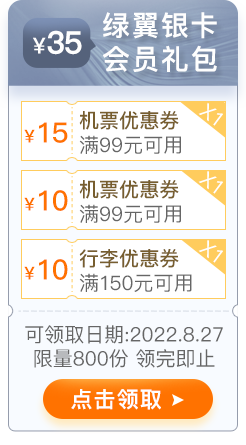1.仅限绿翼会员购买本人乘坐的机票时使用;