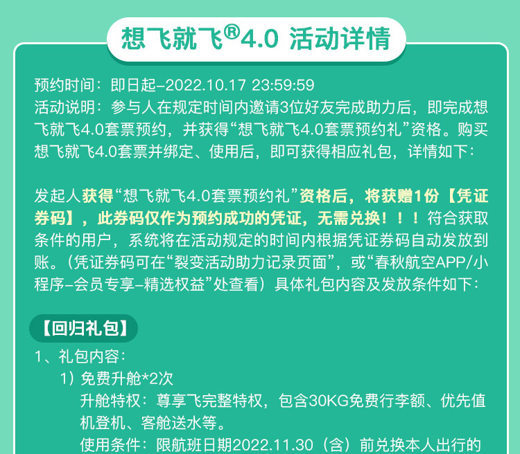 (2)2022.10.31 23:59:59前,购买并绑定想飞就飞4.0套票。