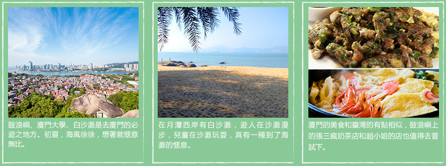 廈門和臺灣隔海相望,廈門有“鷺島”的美稱,相傳遠古時為白鷺棲息之地。氣候宜人,風景秀麗,小島鼓浪嶼更是都市人休閒旅遊的目的地。在我眼中,廈門的氣質是熱情奔放的,朝氣如剛20出頭的年輕人。