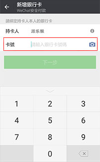 接著輸入銀行卡號,點擊“下一步”按鈕。