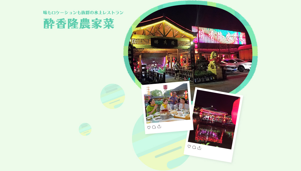東湖の湖上に浮かぶ水上レストラン。この施設では伝統的な湖北料理をいただける他に、イルミネーションによる綺麗な装飾と、雰囲気も抜群です。